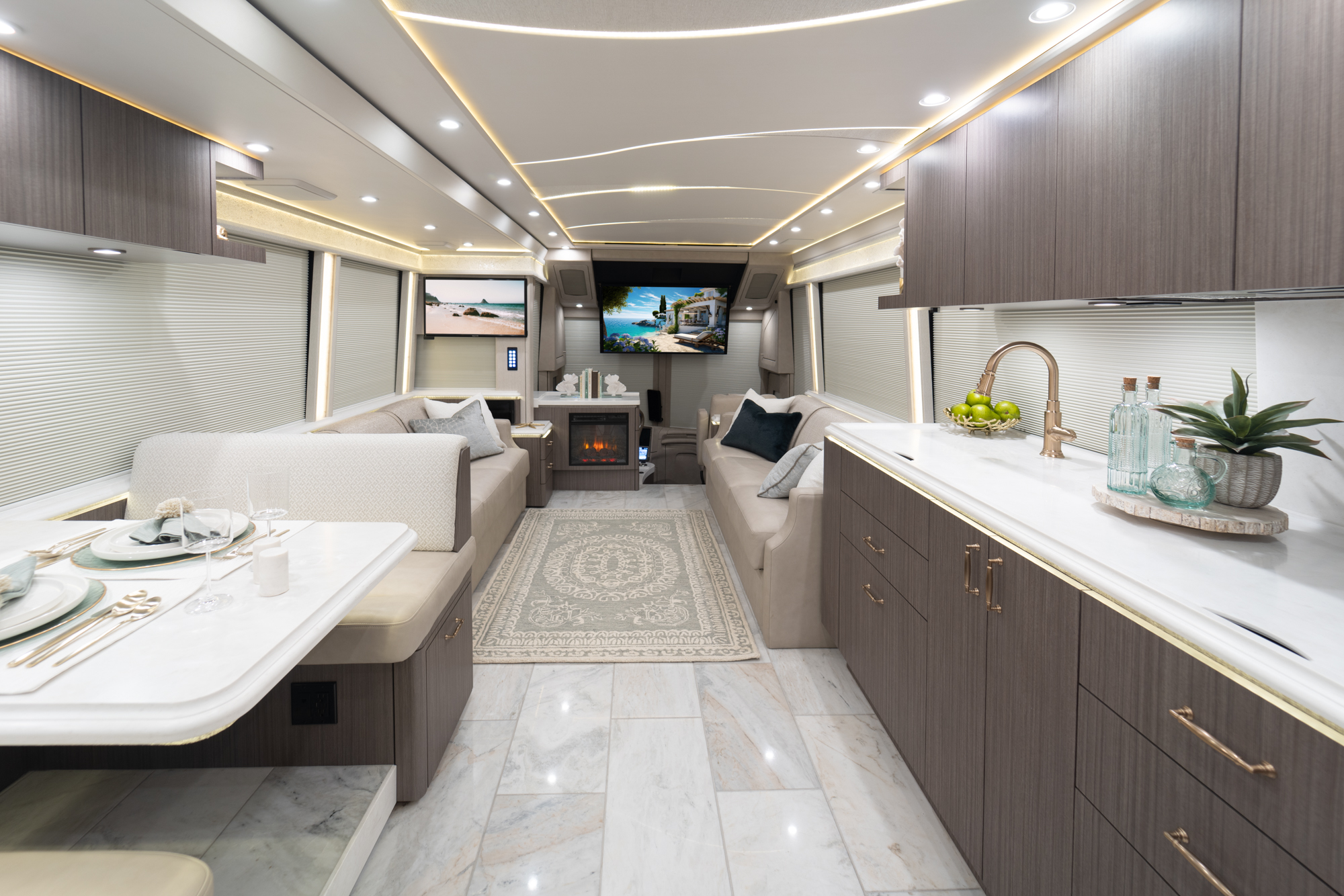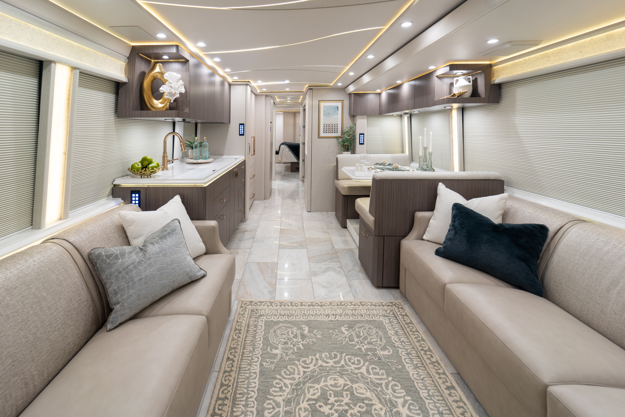 Most “luxury buses” are dressed-up RVs. A Prevost Marathon is different—it’s a 45 foot, 25 ton commercial, multi-million dollar platform transformed into a private jet on wheels. It’s what celebrities, pro teams, and touring artists use when they want to travel in style and top-tier comfort.