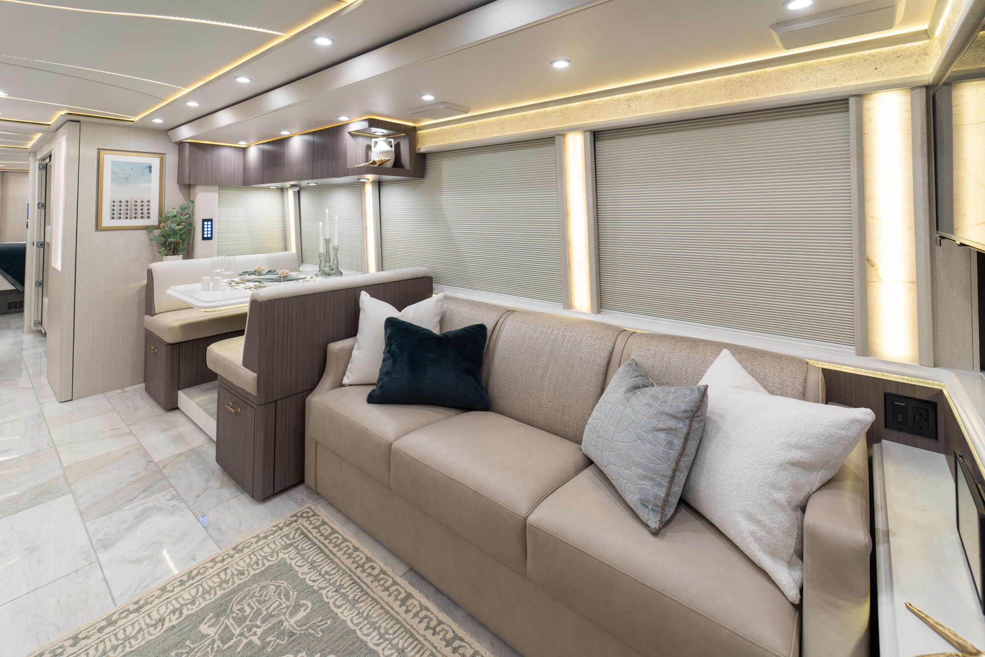 Step into a multi-million dollar, 45 foot Prevost Marathon Coach—widely regarded as the pinnacle of motorcoach design. This isn’t just transportation. This isn't just a bus — it's pure comfort. Designed to comfortably seat up to 12, it's perfect for any daytrip or night on the town and the only way to experience a first-class vacation. For those wanting to travel overnight or be on the road for a few days, you'll find comfortable sleeping for up to 6. Regardless of the destination, it's nothing short of a rolling luxury suite engineered with the same craftsmanship, materials, and systems found in true estate homes and private jets. Whether you’re traveling for a special event, weekend getaway, family vacation or corporate experience, this coach delivers unmatched comfort, privacy, and presence.